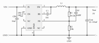 •主要特點:寬4.5V至28v工作輸入范圍;3A最大輸出電流;500KHz開關頻率;ECOT PSM模式控制與快速瞬態響應;內置過電流限制;內置過壓保護;PFM模式在輕載高效率;內部軟啟動;100m0/50m0低RDS(ON)內部功率mosfet;輸出可調從0.923V;不需要肖特基二極管;短保護與hicup模式;集成內部補償;熱關機;可在ESOP8封裝;-40'C到+85℃溫度范圍;