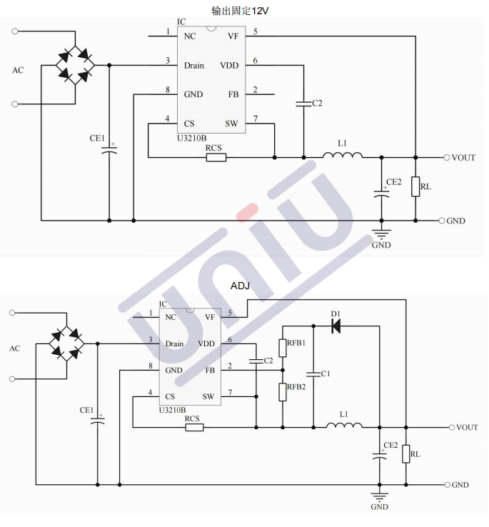 •產(chǎn)品描述:U3210B是一款高性能低成本PWM控制功率器,適用于離線式小功率降壓型應(yīng)用場合,外圍電路簡單、器件個(gè)數(shù)少。同時(shí)產(chǎn)品啟動(dòng)模塊內(nèi)置高耐壓(500V)MOSFET可提高系統(tǒng)浪涌耐受能力。與傳統(tǒng)的PWM功率開關(guān)不同,U3210B內(nèi)部無固定時(shí)鐘驅(qū)動(dòng)MOSFET,系統(tǒng)開關(guān)頻率隨負(fù)載變化可實(shí)現(xiàn)自動(dòng)調(diào)節(jié)。同時(shí)芯片采用了多模式PWM控制技術(shù),有效簡化了外圍電路設(shè)計(jì),提升線性調(diào)整率和負(fù)載調(diào)整率并消除系統(tǒng)工作中的可聞噪音。此外,芯片內(nèi)部峰值電流檢測閾值可跟隨實(shí)際負(fù)載情況自動(dòng)調(diào)節(jié),可以有效降低空載情況下的待機(jī)功耗。U3210B集成有完備的帶自恢復(fù)功能的保護(hù)功能:VDD欠壓保護(hù)、逐周期電流限制、輸出過壓保護(hù)、過熱保護(hù)、過載保護(hù)和VDD過壓保護(hù)。
