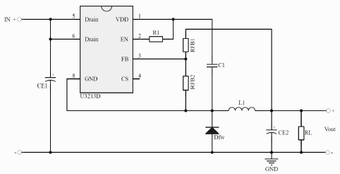 •產(chǎn)品描述:U3213D是一款高性能低成本PWM控制功率器,適用于離線式小功率降壓型應(yīng)用場合,外圍電路簡單、器件個數(shù)少。同時產(chǎn)品內(nèi)置高耐壓MOSFET可提高系統(tǒng)浪涌耐受能力。與傳統(tǒng)的PWM控制器不同,U3213D內(nèi)部無固定時鐘驅(qū)動MOSFET,系統(tǒng)開關(guān)頻率隨負(fù)載(輕載、重載)變化可實現(xiàn)自動調(diào)節(jié)。同時芯片采用了多模式PWM控制技術(shù),有效簡化了外圍電路設(shè)計,提升線性調(diào)整率和負(fù)載調(diào)整率并消除系統(tǒng)工作中的可聞噪音。此外,芯片內(nèi)部峰值電流檢測閾值可跟隨實際負(fù)載情況自動調(diào)節(jié),可以有效降低空載情況下的待機功耗。U3213D集成有完備的帶自恢復(fù)功能的保護功能:VDD欠壓保護、逐周期電流限制、輸出過壓保護、過熱保護、過載保護和VDD過壓保護等。