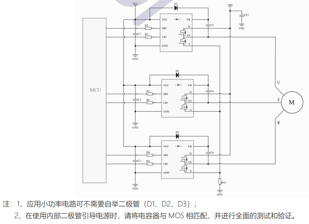 內置自舉二極管 ;懸浮絕對電壓: 500V;內置 500V/3A MOSFET ;負瞬態電壓高 ; 柵極驅動電壓范圍 10V~20Vl;輸入邏輯兼容3.3V、5V l 集成VCC和VBS欠壓保護; 防交叉傳導邏輯 ; 兩雙通道的匹配傳播延遲。