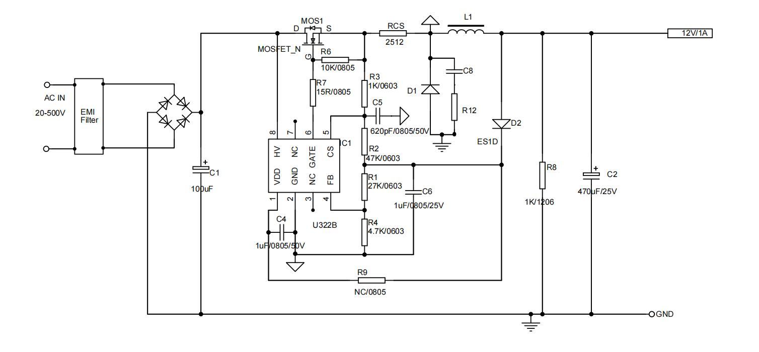 U322B是一款高性能低成本PWM控制功率器,適用于離線式小功率降壓型應(yīng)用場合,外圍電路簡單、器件個(gè)數(shù)少。同時(shí)產(chǎn)品內(nèi)置高耐壓MOSFET可提高系統(tǒng)浪涌耐受能力。與傳統(tǒng)的PWM控制器不同,U322B內(nèi)部無固定時(shí)鐘驅(qū)動(dòng)MOSFET,系統(tǒng)開關(guān)頻率隨負(fù)載變化可實(shí)現(xiàn)自動(dòng)調(diào)節(jié)。同時(shí)芯片采用了多模式PWM控制技術(shù),有效簡化了外圍電路設(shè)計(jì),提升線性調(diào)整率和負(fù)載調(diào)整率并消除系統(tǒng)工作中的可聞噪音。此外,芯片內(nèi)部峰值電流檢測閾值可跟隨實(shí)際負(fù)載情況自動(dòng)調(diào)節(jié),可以有效降低空載情況下的待機(jī)功耗。U322B集成有完備的帶自恢復(fù)功能的保護(hù)功能:VDD欠壓保護(hù)、逐周期電流限制、輸出過壓保護(hù)、過熱保護(hù)、過載保護(hù)和VDD過壓保護(hù)等。
